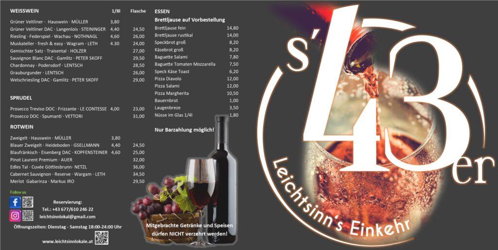 Unser jüngstes Leichtsinn ist das „s´43er Leichsinns Einkehr“. Warum „s´43er“ 43 = unsere Hausnummer.
